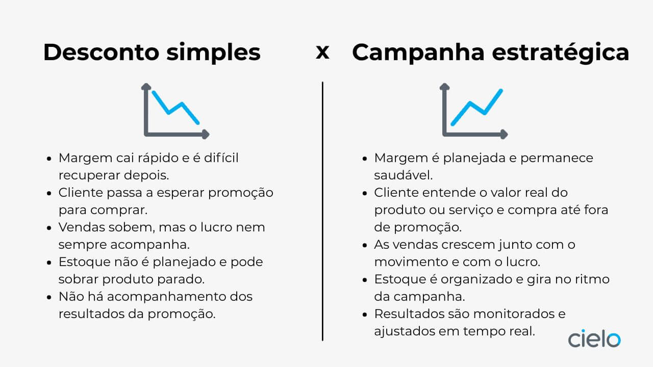 - Pode queimar produtos que poderiam ser trabalhados com mais valor agregado (combo, brinde, experiência, etc.).