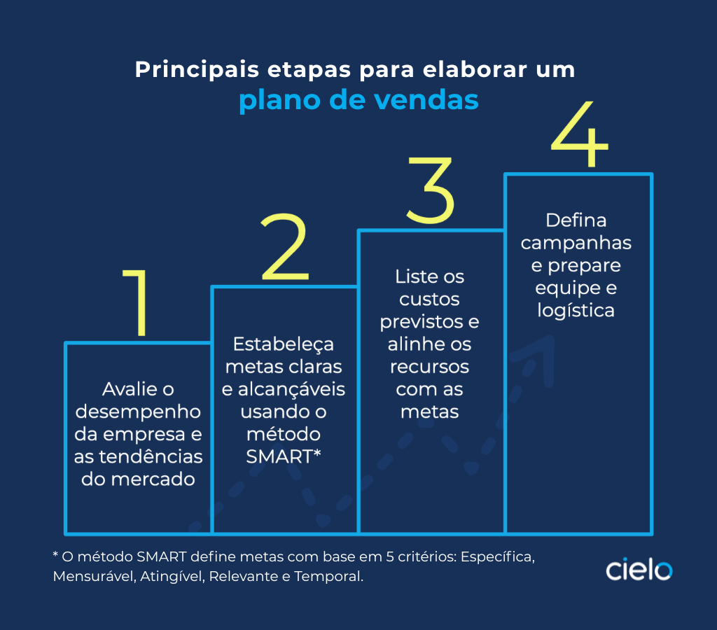 A seguir, vamos detalhar as principais etapas do plano de vendas.